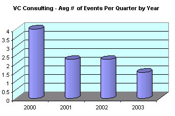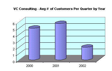 Venture Capital Consulting: From our launch in the fourth quarter of 2000 to the end of 2002, we had only selected 36 firms (less than 2%) from the thousands of business plans received to assist with venture capital consulting services. We continue to be more selective, with fewer customers on average per quarter, but more successful, as we improve our level of services.