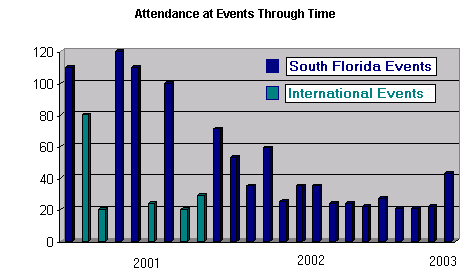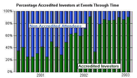 Investor Events: Since 2000 to year end 2002, we had over twenty four major events, with over 1100 attendees, of which over 540 were accredited investors. Since 2002, our events are smaller for better networking, focused in South Florida, and exclusive to 90% accredited investors, and a few select sponsors and entrepreneurs :