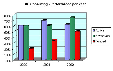 While certainly past performance is not a guarantee of future performance due to the nature of early stage investments, of the 36 firms we have performed venture capital consultancy, profiled as of December 2002: